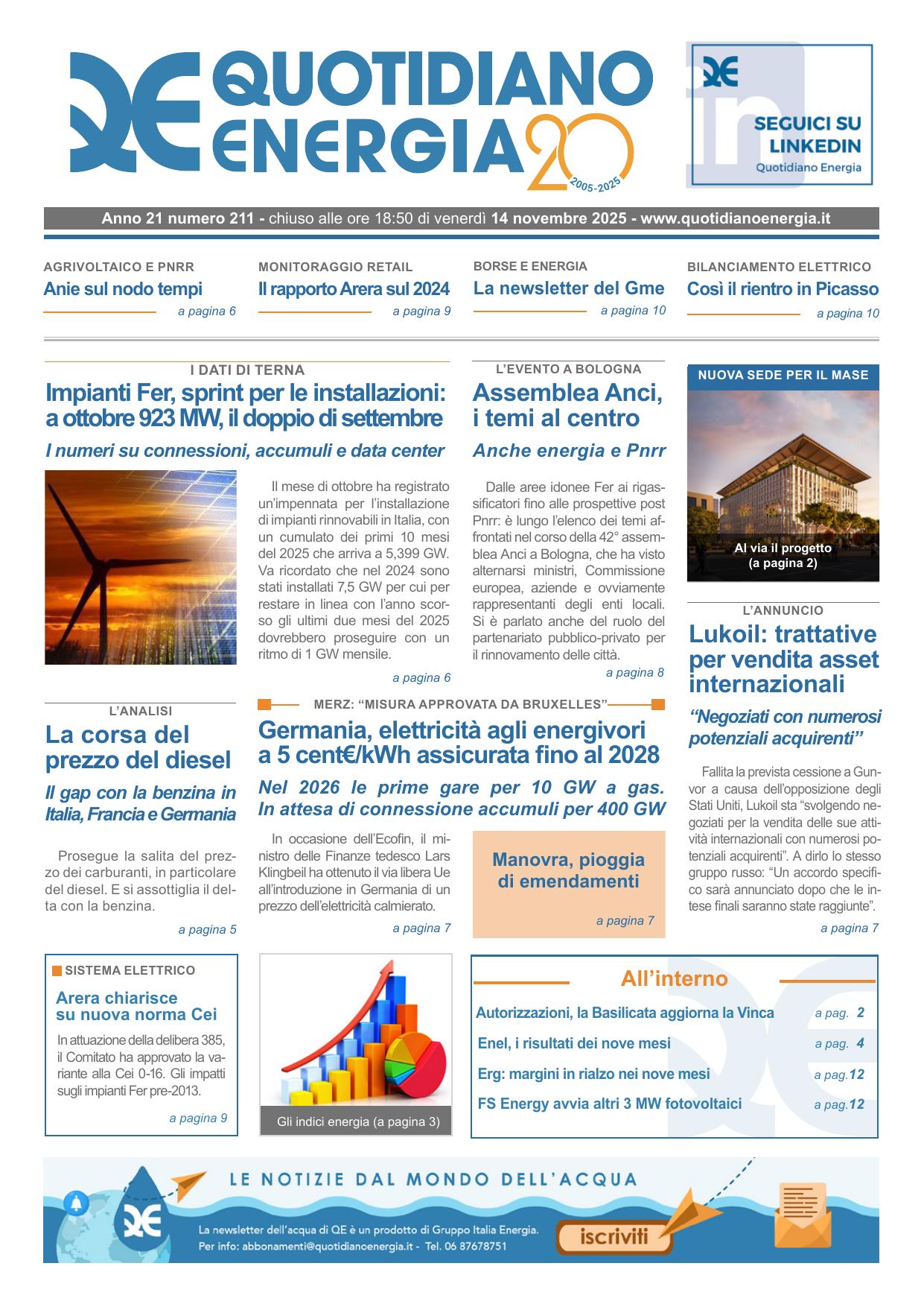 Il mese di ottobre ha registrato un’impennata per l’installazione di impianti rinnovabili in Italia, con un cumulato dei primi 10 mesi del 2025 che arriva a 5,399 GW. Va ricordato che nel 2024 sono stati installati 7,5 GW, per cui per restare in linea con l'anno scorso gli ultimi due mesi del 2025 dovrebbero proseguire con un ritmo di 1 GW mensile