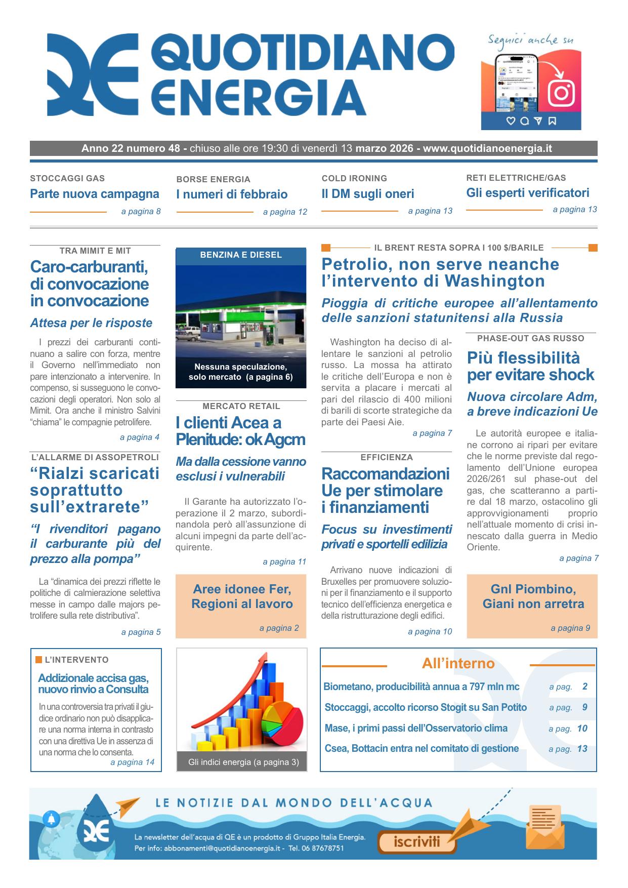 Il Mase ha pubblicato il DM relativo alla capacità di stoccaggio gas per il periodo 2026-2027, che ricalca in buona parte quello dello scorso anno che ha introdotto una serie di misure aggiuntive per supportare il riempimento dei depositi e garantire la sicurezza energetica