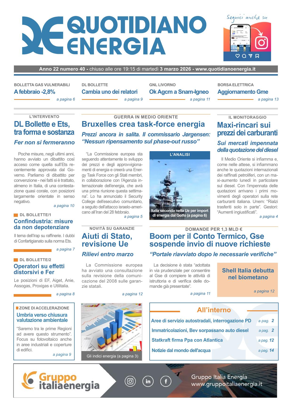 Arera ha ufficializzato l’avvio di una task force sui prezzi energetici, anticipata dalla premier Giorgia Meloni. Nel contesto “delle forti tensioni seguite all’escalation geopolitica in Medio Oriente”, spiega l’Autorità, la nuova Unità di Vigilanza Energetica avrà il compito di monitorare in tempo reale l’evoluzione dei prezzi all’ingrosso e al dettaglio di gas ed elettricità
