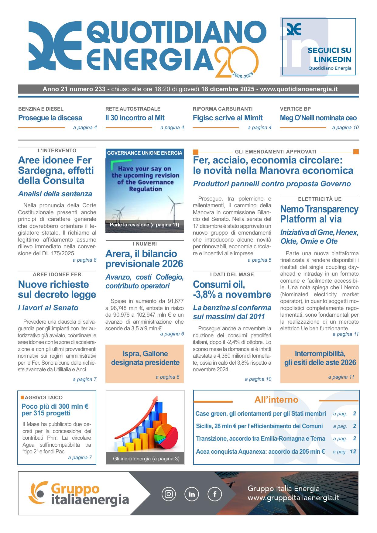 L’Arera ha deciso di confermare gli incentivi sulle prestazioni degli stoccaggi gas a Stogit e Ital Gas Storage, rinviando però a un successivo provvedimento eventuali interventi sulle modalità di calcolo dei prezzi di riserva, chiesti dalla società del gruppo Snam.