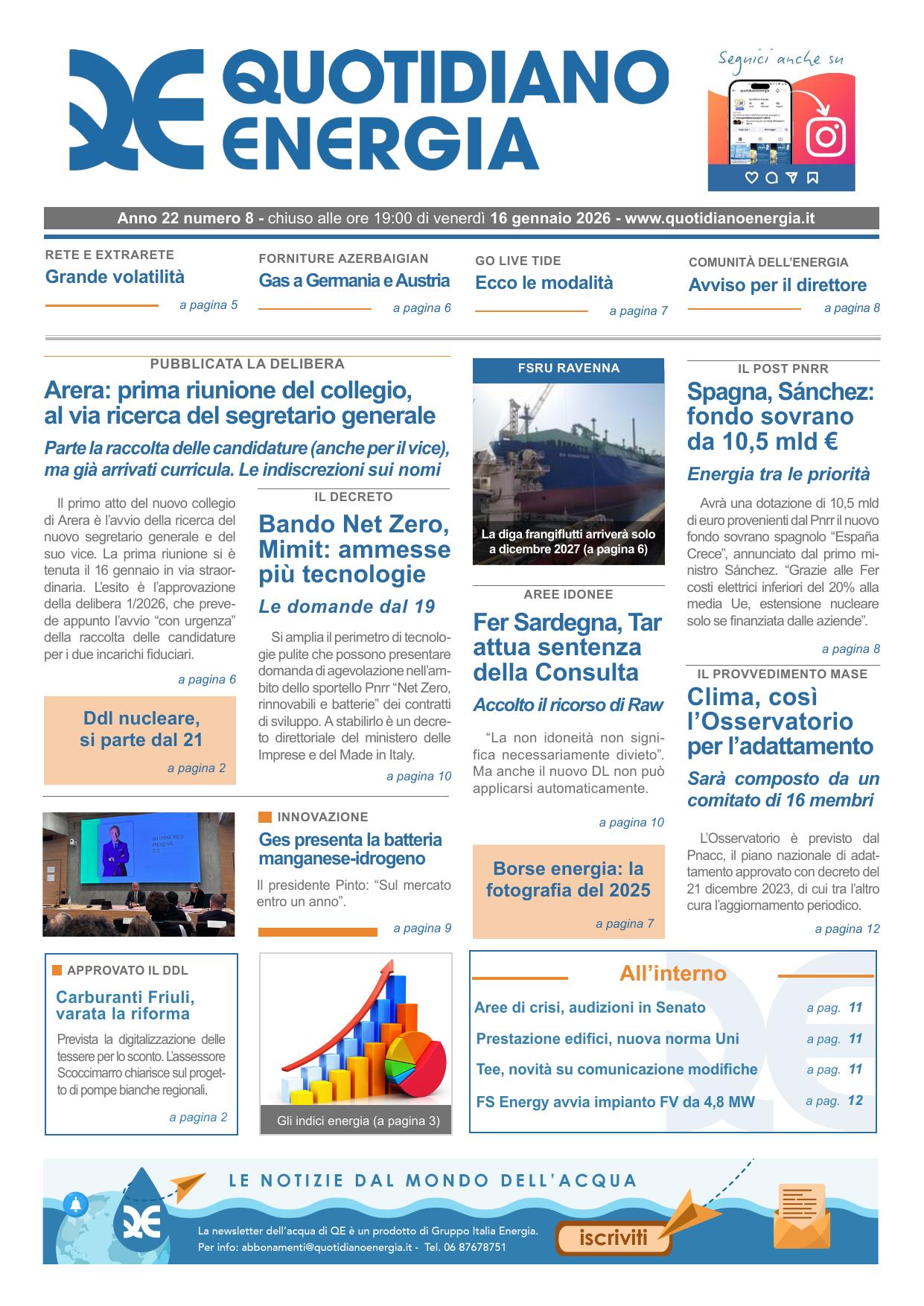 Il primo atto del nuovo Collegio di Arera presieduto da Nicola Dell’Acqua è l’avvio della ricerca del nuovo Segretario generale e del suo vice. La prima riunione si è tenuta oggi, 16 gennaio, in via straordinaria (da qui la dicitura “bis”) e prima delle attese: a quanto risulta a QE sarebbe stata convocata ieri all’ultimo momento.