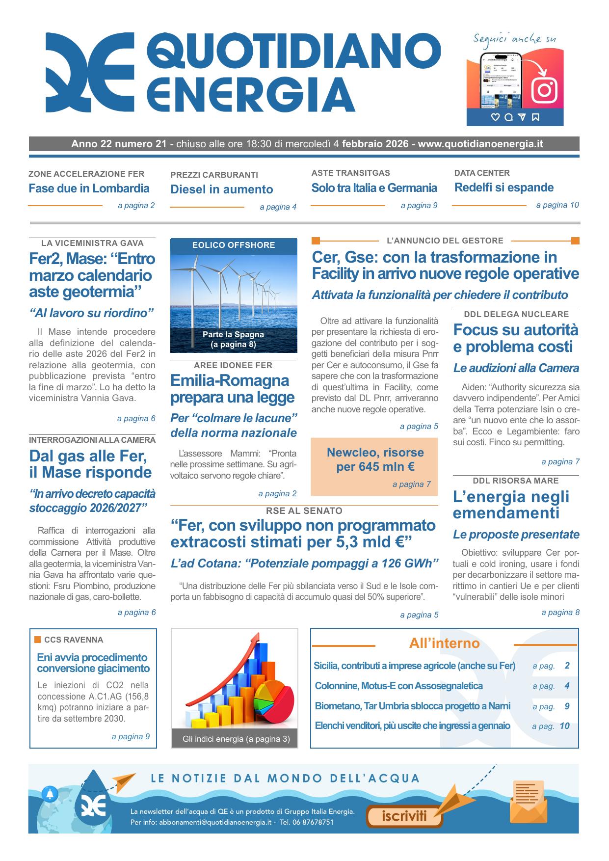 I clienti finali energivori/aggregatori hanno siglato 476 contratti nell'ambito del meccanismo Energy Release 2.0, per un volume assegnato di energia pari a 22,5 TWh. Lo ha reso noto il Gse a seguito della conclusione, avvenuta il 31 gennaio 2026, del periodo previsto per la contrattualizzazione dell'energia assegnata