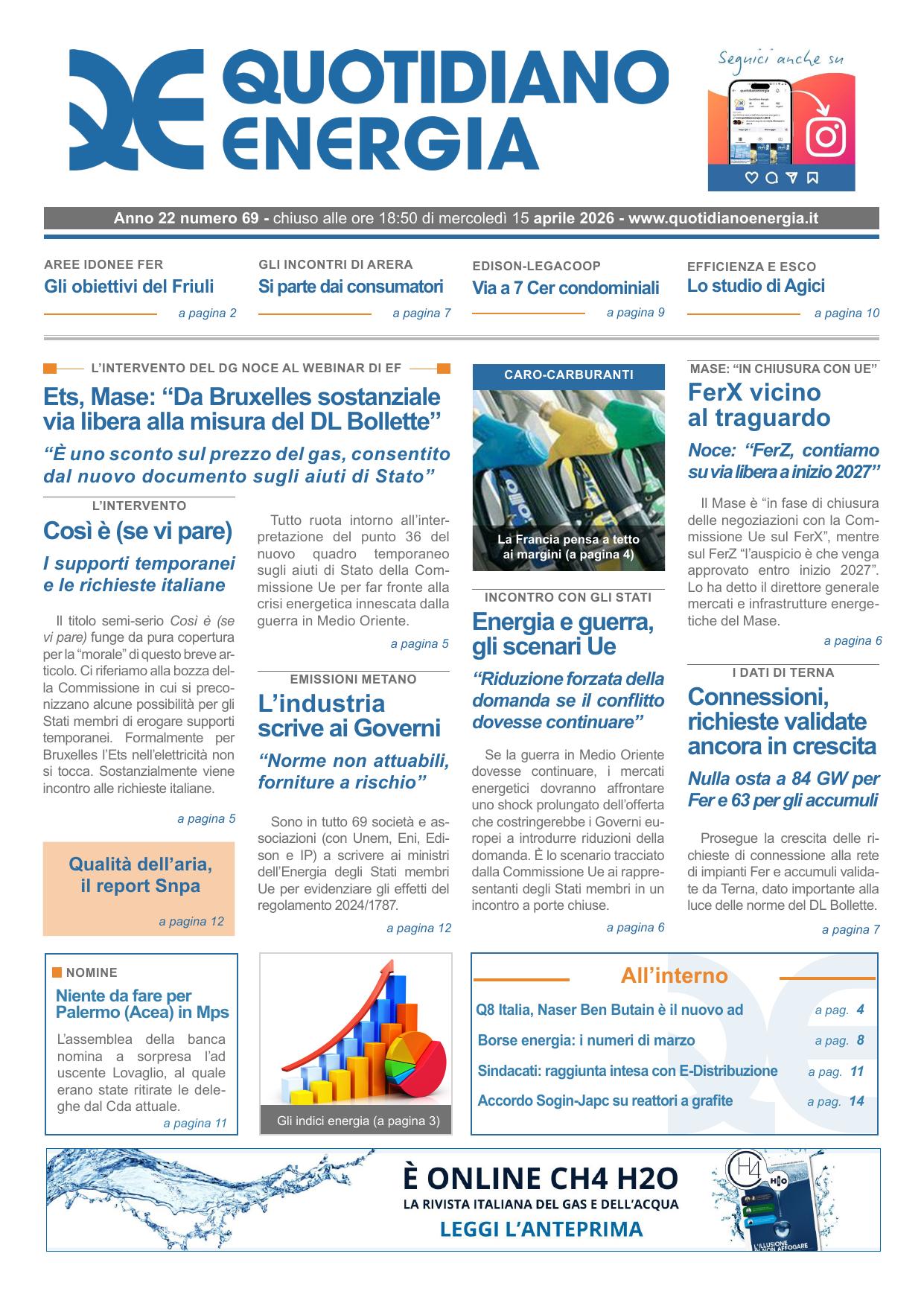 Tutto ruota intorno all’interpretazione del punto 36 del nuovo quadro temporaneo sugli aiuti di Stato della Commissione Ue per far fronte alla crisi energetica innescata dalla guerra in Medio Oriente. Un passaggio che in teoria sembrerebbe bocciare l’art. 6 del DL Bollette sulla “sterilizzazione” della componente Ets sul prezzo del gas ma che invece, in concreto, potrebbe dare un via libera “mascherato” alla misura.