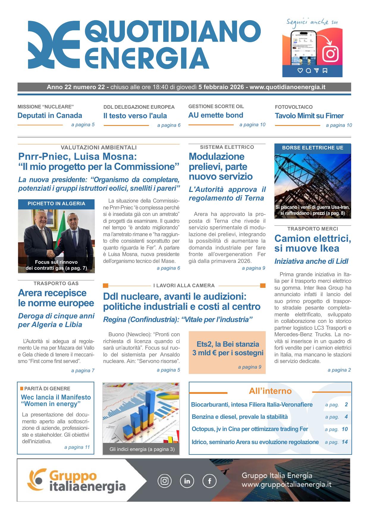 Arera ha approvato la proposta di Terna che rivede il servizio sperimentale di modulazione dei prelievi, integrando la possibilità di aumentare la domanda industriale per fare fronte all’overgeneration Fer già dalla primavera 2026.