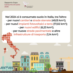 Peggiorano i dati sul consumo di suolo in Italia: nel 2024 è cresciuto di quasi il 16% rispetto all’anno precedente, con un ritmo di 230.000 metri quadri al giorno. Poco più di 1.700 ettari sono associati a impianti FV a terra, un dato che è quadruplicato rispetto al 2023