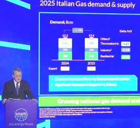 Negi scenari al 2030 domanda elettrica (337 TWh) inferiore alle stime Pniec e di gas (62,2 mld mc) superiore. Asset rotation per 3 mld €. Bene i conti 2025 e la guidance 2026, nonostante un impatto di 40 mln €/anno dall’aumento dell’Irap del DL Bollette. L’ad Scornajenchi: “Ridiscutere con Arera Rab Gnl, ora strategico”
